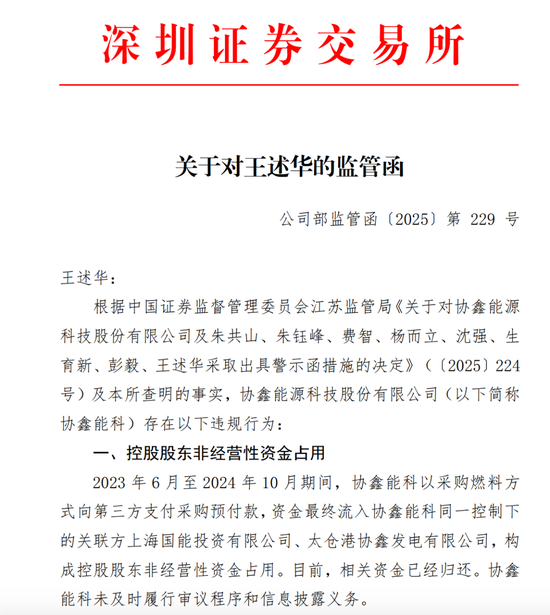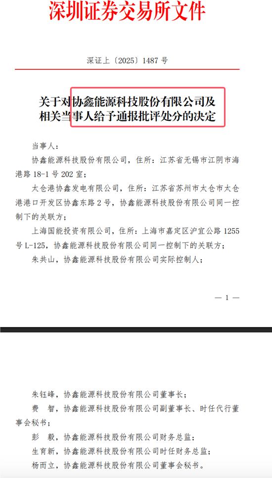 控股股东非经营性资金占用等四大问题!协鑫能科和控制人朱共山等 6 高管被深交所通报批评!